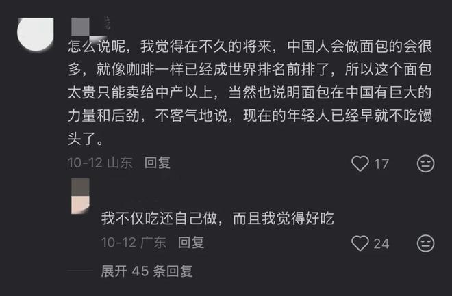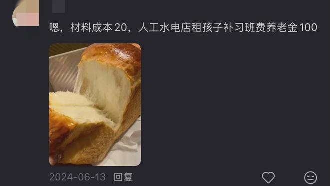 其实在社交媒体上关于天价面包的讨论不断,比如去年某网红面包店一款售价为128元的黑山吐司面包就冲上热搜。
