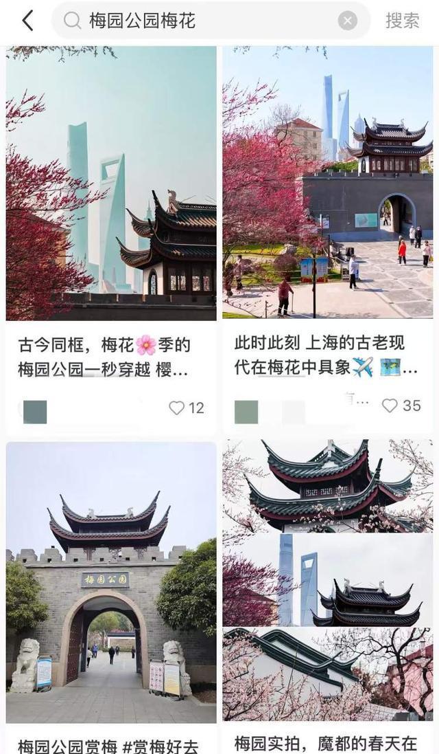 梅园公园是浦东梅园社区的配套公园,面积很小,原本在全市没什么名气。几年前,公园开始走红,因为有人发现,公园里有个角度可以拍到仿古建筑和陆家嘴“三件套”同框,这古今交融的画面,再搭配旁边正好有一株红梅,顿时有了特别的意境和无穷的遐想空间。