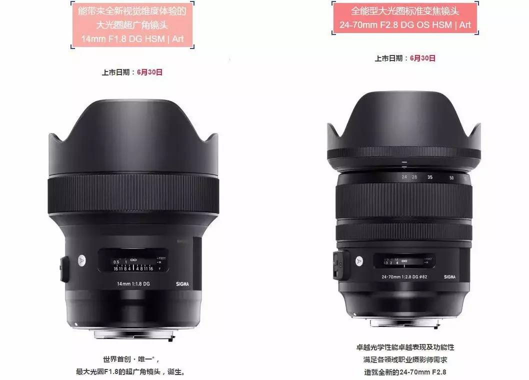 4)【腾龙24-70mm f2.8 VC G2镜头哪去了?】原定与18-400mm f3.5-6.3一起发布的腾龙24-70mm f2.8 VC G2镜头跳票了,新的发布时间可能会安排在下周(也许会与佳能EOS 6D Mark II一天发布)这款镜头采用12组17片光学结构;9片光圈叶片;最近对焦距离0.38米;最大放大倍率1:5;防抖等级约4.5-5档;滤镜接口82毫米;最大直径88.4毫米;长度:佳能版111毫米,尼康版108.5毫米;重量:佳能版905克,尼康版900克;搭配双MPU可提供一流的自动对焦性能;售价:1199美元(8200元)、 英国售价1299英镑。此前适马24-70mm f2.8 Art镜头的售价1299美元,这次腾龙的镜头售价还线 Art和14mm F1.8 Art将提前上市】适马官微发布消息表示,24-70mm F2.8 OS DG HSM Art和大光圈超广角定焦镜头14mm F1.8 DG HSM Art镜头将于下周五(6月30日)正式上市。