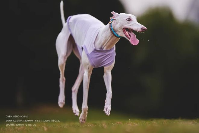 为了体验适马200mm F2的性能,我们安排了一场奔跑最快的犬种灵缇的拍摄。适马200mm F2的 防抖性能与高对焦精度 ,使得在拍摄快速移动的宠物时,能够轻松应对。
